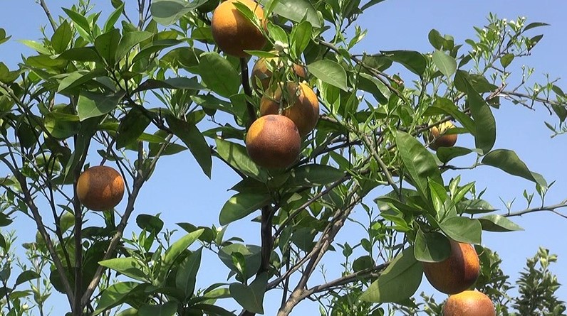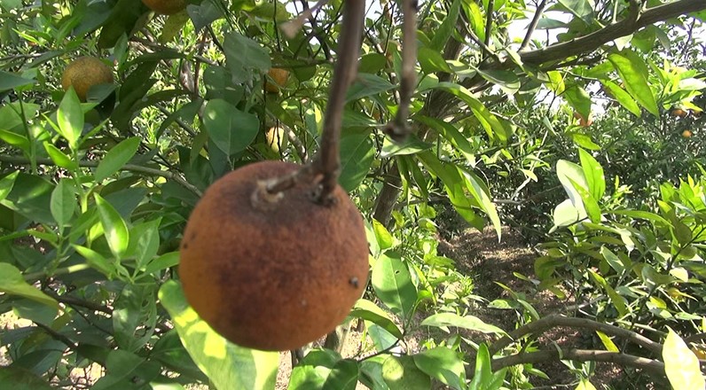 Tình trạng rụng trái cam gây thiệt hại lớn.
